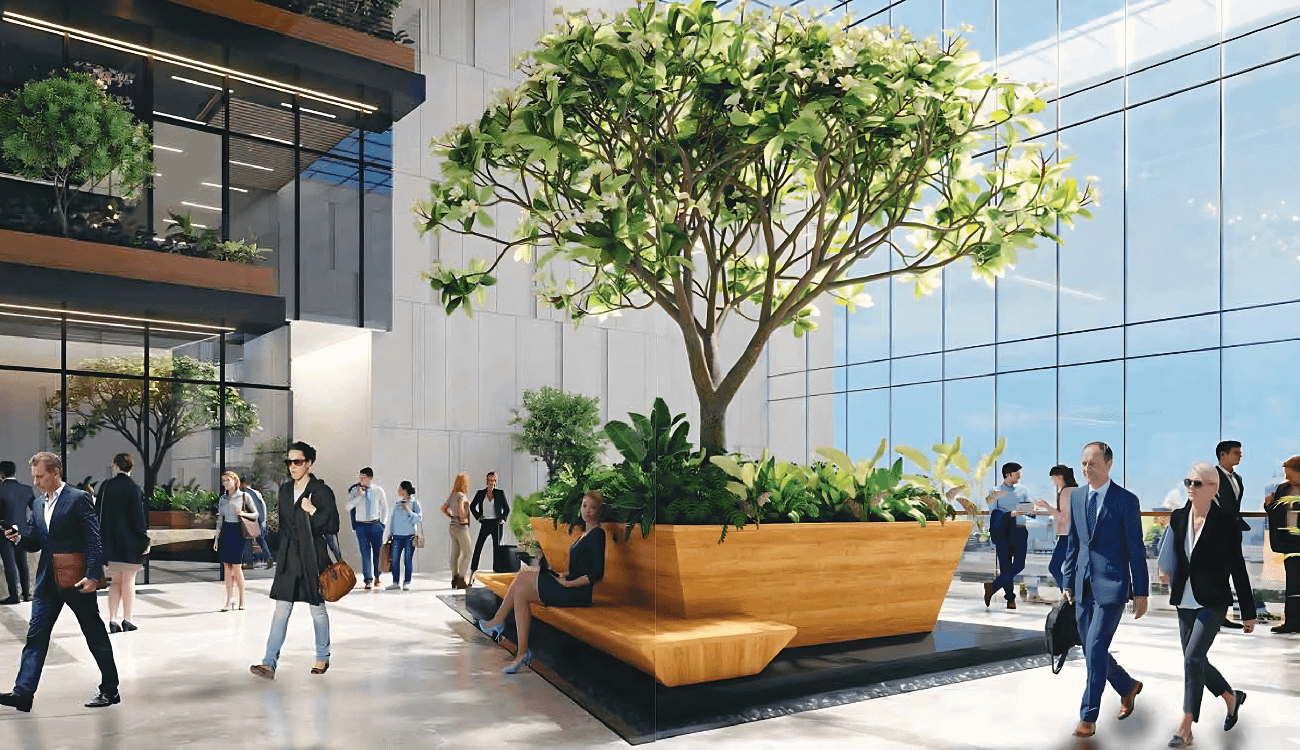 The vision for this project has been to truly embrace the notion that it's the spaces that we create between the buildings that set this place apart. So it's the green landscapes, the walking spaces, and the heritage street that are the heart of this project and what it tries to do is to promote social cohesion. The flagship believes in giving back to nature. It gives back by providing acres of green space, place to take shade, place that help imoprove the air quality, places to play, places for enjoyment or simply to relax. What we are really going to create are these great set Pieces.