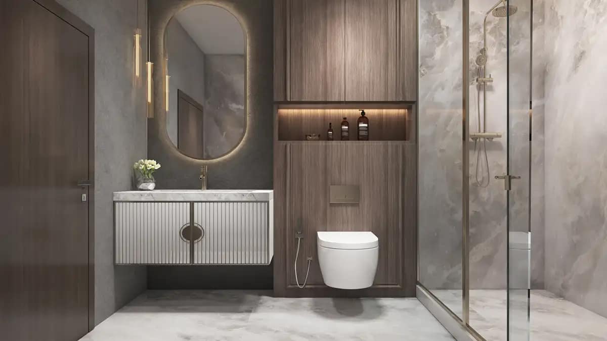 Combination of Imported marble cladding / Designer Tiles or equivalent finished along with premium plastic emulsion paint of appropriate colour.