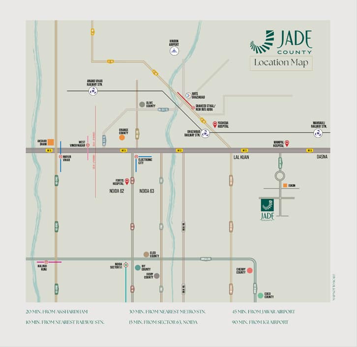 Discover Jade County, a high-rise residential masterpiece spanning 13 acres with nine towers offering over 1,014 premium 3BHK, 4BHK, and 5BHK residences. Located at a bustling thoroughfare across the Delhi- Meerut Expressway, it boasts excellent connectivity to Delhi and NCR. This pre-certified IGBC GOLD rated project champions sustainable urban living through its green design, prioritizing energy efficiency and well-being. Inspired by the enduring allure of the Jade Stone, Jade County seamlessly blends indoor and outdoor spaces. A vast central landscape with a serene waterbody and clubhouse fosters tranquil views, while double-height stilts and grand entrance lobbies create an expansive, connected environment, redefining urban living, making uncompromising luxury accessible.
